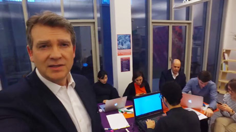 L’ambiance se veut plus moderne chez Arnaud Montebourg, que l’on retrouve dans son QG de campagne en train de se filmer lui-même dans un mouvement tournant façon Claude Lelouch sous Lexomil (pas de quoi être saisi de vertige). Si le positionnement politique du député de Saône-et-Loire paraît souvent confus, au moins réussit-il ici la synthèse de la start-up et de la perche à selfie. Montebourg évoque « ceux qui sont seuls, souffrants, malades, en difficulté » – et là on repense à Benoît Hamon.