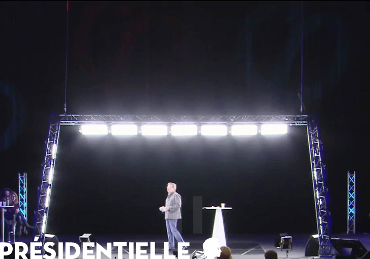 Il n’a pas d’organisation : YouTube portera la bonne parole. Et ce n’est pas sans effet. 200.000 personnes le suivent sur sa chaîne. Il multiplie les rendez-vous, où il apparait seul, décontracté, jouant de connivence avec celui qui le regarde. Mélenchon se veut en direct avec chacun et avec le peuple. Il se représente comme un instituteur du peuple, que sa blouse grise boutonnée était chargée de raconter cet après-midi. Ces discours sont suivis sur les réseaux autant que dans les salles, parce qu’ils sont toujours riches d’explications, d’informations et de passion. Refusant qu’une organisation se manifeste de façon trop visible, Mélenchon interdit la présence de drapeaux. L’ambiance de ses meetings en est transformée : les cornes de brumes sont remisées, l’assistance est assez silencieuse : chacun écoute un cours d’une université populaire.