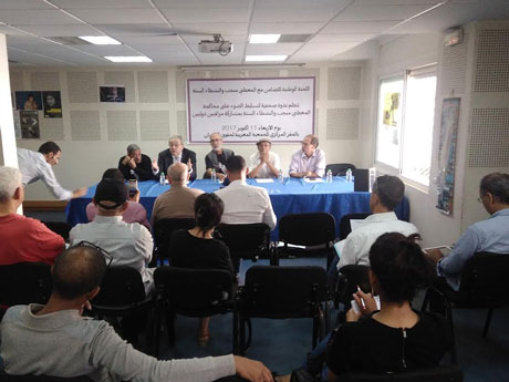Depuis deux ans, la même pièce de théâtre est rejouée à chaque audience. Le matin, le Comité de soutien de Monjib et ses co-accusés organise une conférence avec l’Association marocaine des droits humains (AMDH). Puis un sit-in a lieu avant l’audience devant le tribunal de Rabat. « C’est devenu un rituel », explique l’accusé Rachid Tarik. « Lors de chaque audience, nous apprenons le prochain rendez-vous. Nous ne recevons pas de nouvelle convocation. Et nous savons que notre audience se tiendra vers 15 heures, lorsque les curieux ont quitté le tribunal et que les quotidiens ont déjà envoyé leurs éditions à l’impression. »