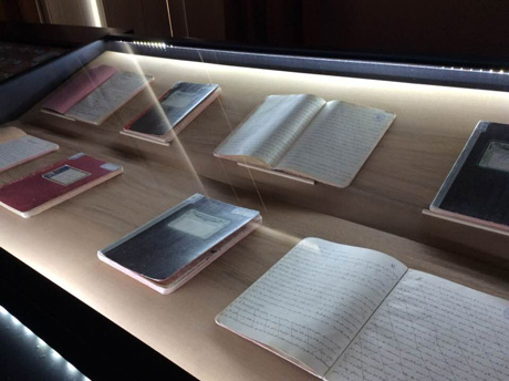 Le Centre culturel italien de Londres se trouve dans le quartier cossu des ambassades de Mayfair. On monte au premier étage de ce vaste immeuble et on entre dans une salle plongée dans l’obscurité. Les cahiers sont entreposés sur un présentoir en bois et protégés par une vitre. L’éclairage est réduit pour ne pas abîmer des documents vieux, mais étonnamment bien conservés.