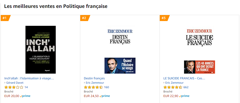 C’est un autre qui attire notre attention, dont voilà le véritable titre : Inch’Allah, l’islamisation à visage découvert, et le sous-titre : « Une enquête spotlight en Seine-Saint-Denis ».