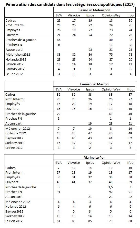 2. Les études disponibles sur le vote Mélenchon 2017 sont concordants et infirment à mes yeux l’idée d’un moteur « populiste » de ce vote. Celui-là a certes retrouvé une part de la composition populaire des électorats de la gauche française d’autrefois. Près d’un quart des catégories populaires (ouvriers et employés) a choisi le vote en sa faveur. On notera que cette propension n’est pas univoque : alors que les électorats de Marine Le Pen et d’Emmanuel Macron sont déséquilibrés, au détriment des couches moyennes dans un cas, des couches populaires dans l’autre, Mélenchon réussit à « parler » à la fois à des cadres, à des professions intermédiaires, à des employés et à des ouvriers. Dans une France déchirée par les inégalités, c’était plutôt de bon augure ! Plus de 70% des employés et ouvriers sont allés voter à cette élection présidentielle, où la représentation populaire est donc moins défavorisée que dans d’autres consultations. Or ce vote sociologiquement marqué n’a pas obéi à de seules logiques sociales. Contrairement à ce qui se dit parfois, la logique de la droite et de la gauche a fonctionné en avril 2017 et cela se voit, que l’on prenne en considération le vote antérieur ou la proximité partisane. Mélenchon attire d’abord la gauche (dont un gros quart de l’électorat Hollande de 2012) ; Macron bénéficie d’une autre partie de la gauche, du centre et même d’une petite frange du sarkozysme en décomposition ; Le Pen retrouve l’écrasante majorité de ses électeurs de 2012 (80%) et absorbe une partie de la droite. Les ouvriers qui votent pour Marine Le Pen ne sont pas neutres idéologiquement : ils ont voté précédemment pour elle, ou bien ils se trouvent dans des milieux locaux déjà fortement marqués par le vote frontiste d’hier. En sens inverse, la force de Mélenchon, éclatante lors de son discours du 18 mars 2017, sur la place de la République, a été de redonner un sens éthique et populaire à des valeurs que le socialisme de gouvernement avait épuisées. Sans doute notera-t-on qu’il est parvenu, comme Macron et Le Pen, à attirer vers lui des individus qui ne se reconnaissent dans aucun parti. Mais l’expérience montre que cette capacité s’explique par un effet d’entraînement, et pas parce que tel ou tel candidat est supposé n’être ni de droite ni de gauche. Les « indéterminés » sont attirés vers ceux qui incarnent un souffle et une accroche profonde dans un monde incertain. En 2017, Mélenchon était de ceux-là. En 2017, il entraîne la gauche et ne mord pas sur la droite ; Martine Le Pen dynamise la droite et ne mord pas sur la gauche ; Emmanuel Macron se nourrit d’abord de la gauche et du centre, puis de la droite pour une part plus modeste – c’est une fois au pouvoir qu’il va s’installer plus avant sur sa droite.