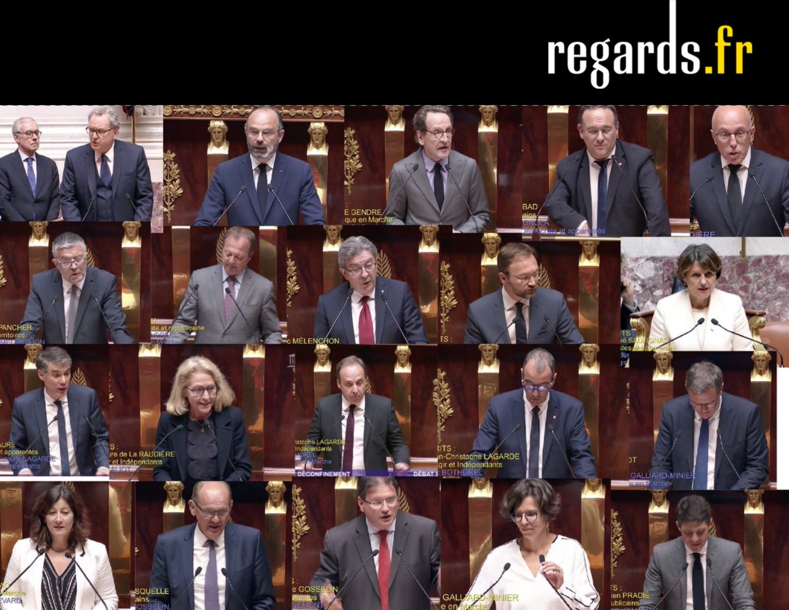 Ce montage, c’est celui des orateurs de l’Assemblée nationale lors du débat qui a suivi, le 28 avril, la présentation du plan de déconfinement par le Premier ministre. Quatre femmes pour seize hommes, et encore, la première femme à avoir été aperçue au perchoir (si on ne compte pas les agents de nettoyage) l’a été au bout de 3h30 de débat… La « guerre », c’est une affaire d’hommes. Macron, Philippe, Véran[[Rappelons qu’avec le remplacement d’Agnès Buzyn par Olivier Véran, il n’y a plus que 8 femmes ministres sur 17 ; il n’y a toujours que 9 femmes « ministres auprès de… » et secrétaires d’État sur 20 ; ce qui fait un total de 20 hommes et 17 femmes au gouvernement.]], Le Maire et Castaner. Côté femmes, « à part Marine Le Pen, Sibeth Ndiaye et Marlène Schiappa, il n’y a plus personne dans les médias », déplore Sandra Regol, secrétaire nationale adjointe d’EELV, qui s’inquiète par ailleurs de la capacité de l’extrême droite à faire monter des jeunes femmes.