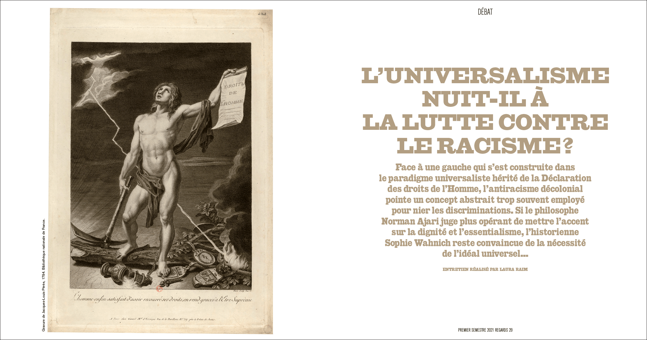 Face à une gauche qui s’est construite dans le paradigme universaliste hérité de la Déclaration des droits de l’Homme, l’antiracisme décolonial pointe un concept abstrait trop souvent employé pour nier les discriminations. Si le philosophe Norman Ajari juge plus opérant de mettre l’accent sur la dignité et l’essentialisme, l’historienne Sophie Wahnich reste convaincue de la nécessité de l’idéal universel…