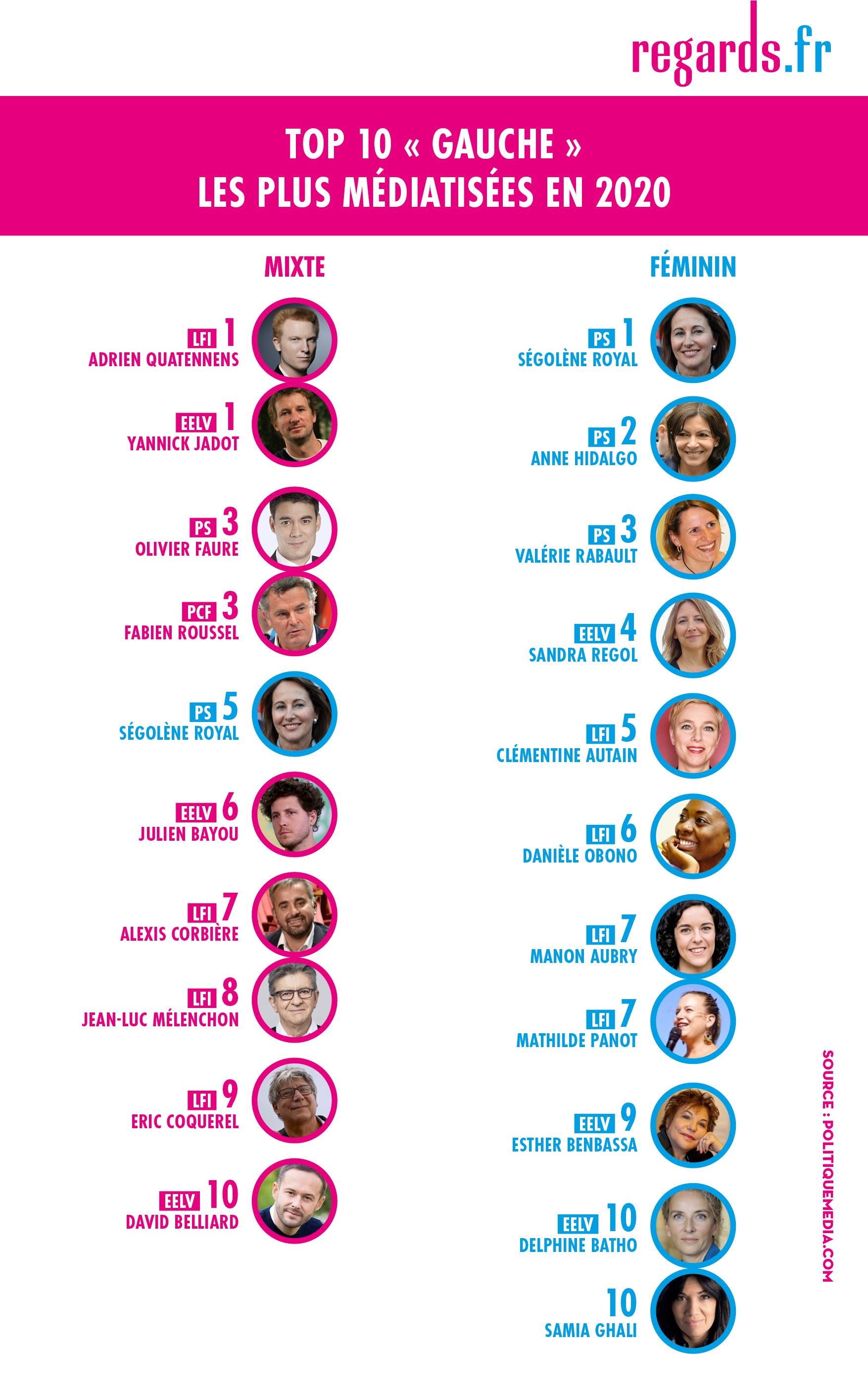 Analyse Regards : mais où est la gauche ? Quatennens, Jadot, Royal et… c’est tout ! En comparaison, l’extrême droite place autant de personnalités dans ces classements. Inquiétant.