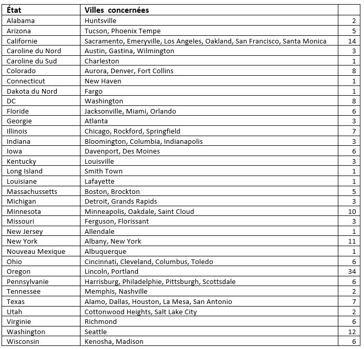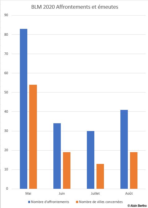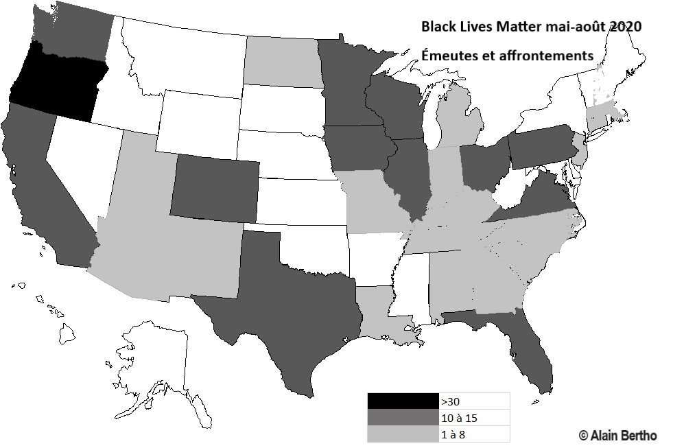 Aux États-Unis mêmes, la force, la concentration dans le temps, l’extension géographique de la mobilisation est sans commune mesure avec les émeutes qui avaient éclaté en 2014-2015 après des meurtres policiers racistes du même type à Ferguson et Baltimore : 188 émeutes dans 72 villes de 32 États en quatre mois en 2020 pour 32 émeutes dans 10 villes de 9 États sur 10 mois en 2014-2015.