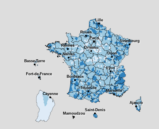 La carte interactive de la DREES de l’accessibilité potentielle localisée aux médecins généralistes, aux infirmiers, aux sage -femmes et aux masseurs kinésithérapeutes est disponible ici.