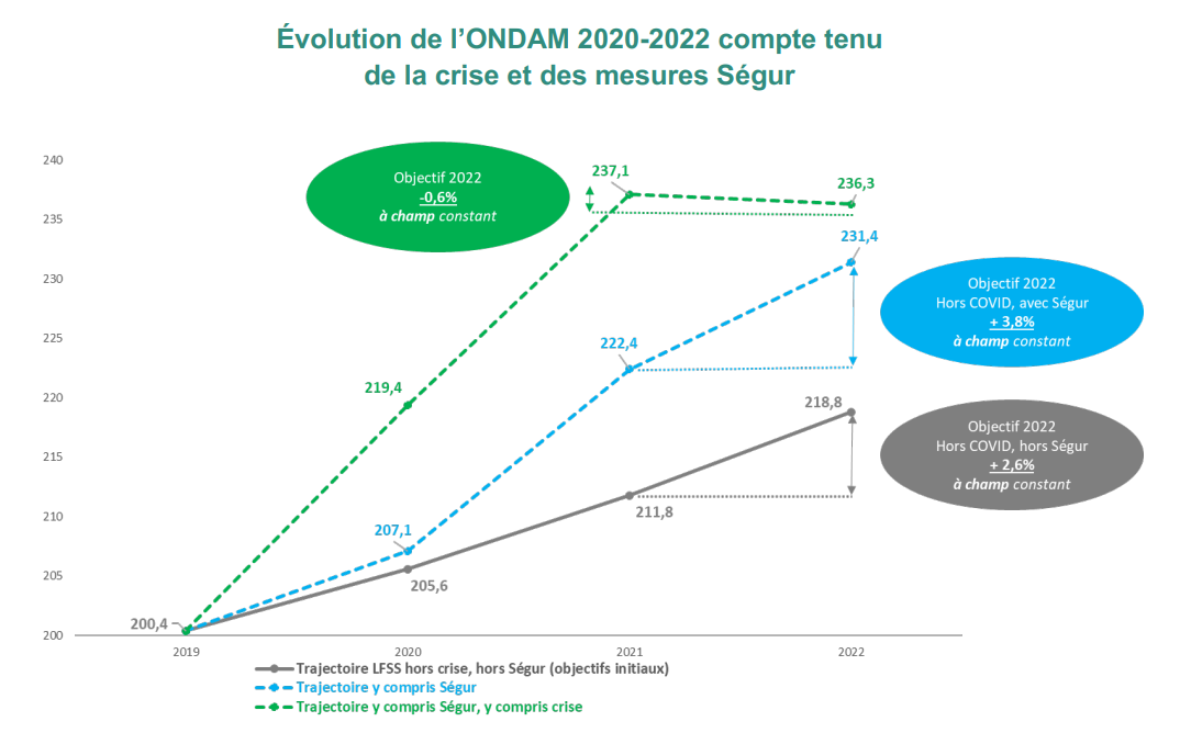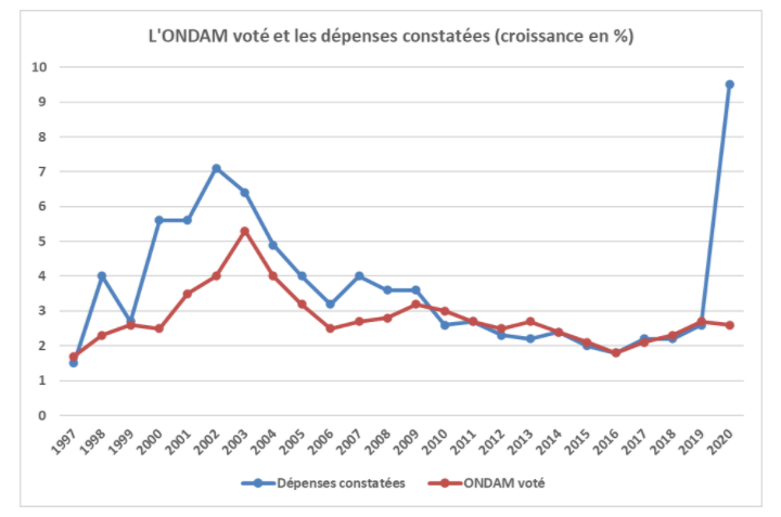 Les dépenses ont explosé l’enveloppe prévue en 2020, 2021 du fait des dépenses liées au covid et au Grenelle de la Santé.