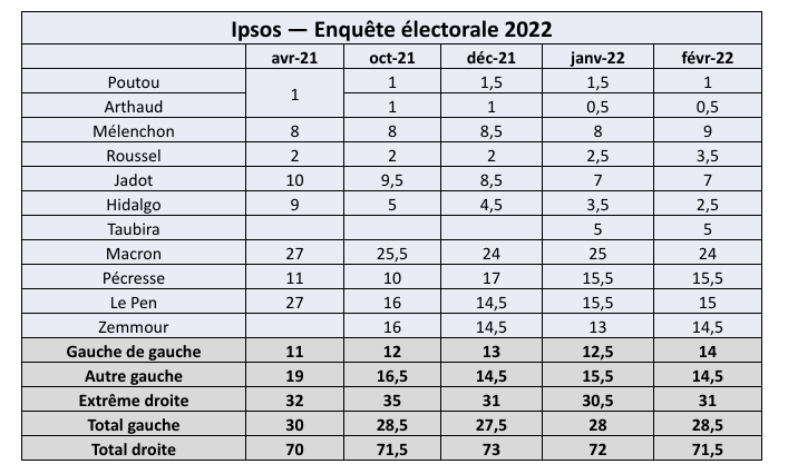 On pouvait s’imaginer que la part de l’électorat de gauche tentée en 2017 par le vote Macron dès le premier tour reviendrait vers la gauche, une fois survenues les premières désillusions. Le grand retour n’a pas eu lieu. Les deux mois qui restent peuvent changer encore beaucoup de choses. Ils risquent certes de ne pas bousculer le rapport entre la droite et la gauche, dont la stabilité contraste avec l’indécision des personnes sondées. Mais l’ultime séquence peut modifier sensiblement les équilibres au sein de chaque « famille ». Cela peut compter, dans une élection où le « ticket d’entrée » au second tour risque d’être bas (autour de 15-16%), comme en 2002 (où il était entre 16 et 19%). Si persiste ce constat, tout est possible sur le papier, à droite comme à gauche.