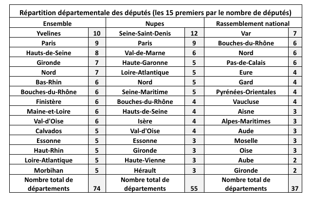 Tout cela se répercute directement sur la distribution territoriale des députés élus dimanche dernier.