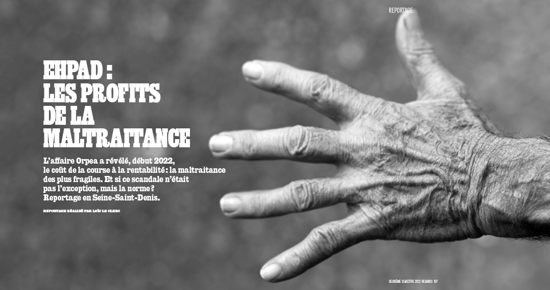 L’affaire Orpea a révélé, début 2022, le coût de la course à la rentabilité : la maltraitance des plus fragiles. Et si ce scandale n’était pas l’exception, mais la norme ? Reportage en Seine-Saint-Denis.