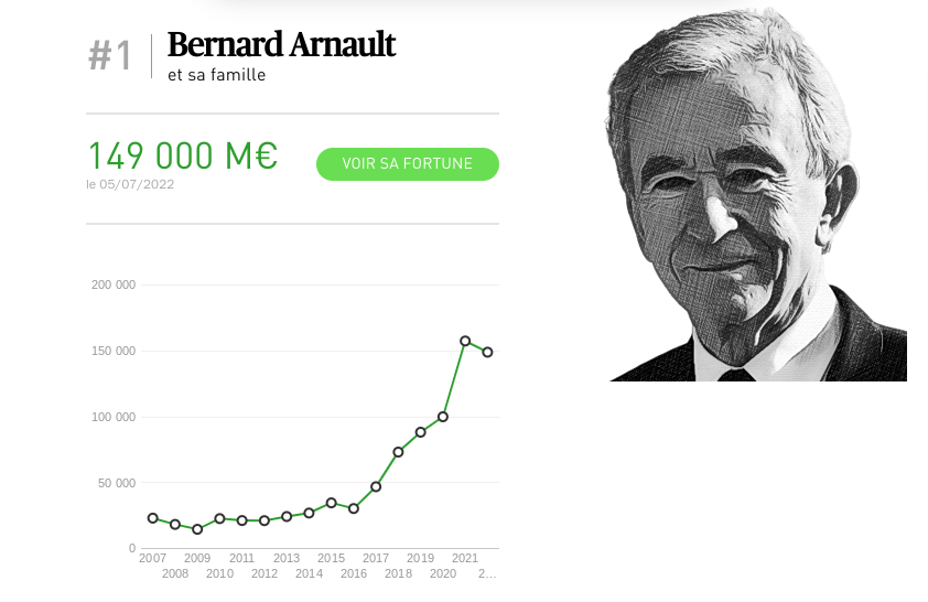 C’est ainsi que Bernard Arnault est devenu la première fortune française et la troisième fortune mondiale. Selon la revue Challenges, il pèse 150 milliards d’euros.