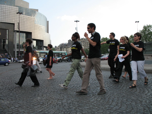 Un collectif apolitique d’artistes a organisé le 28 avril une marche sécuritaire entre Bastille et République afin de dénoncer l’Etat policier que souhaite mettre en place Sarkozy.