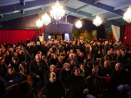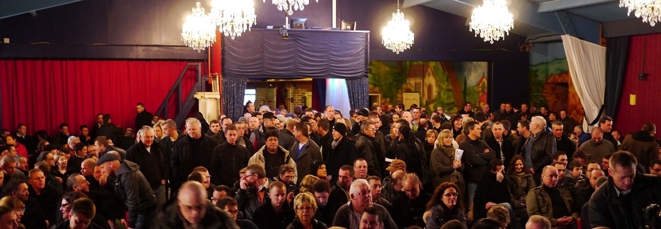 Mercredi 25 janvier, 10 heures, la salle du Bowling de Calais est comble. Nombreux sont ceux qui restent debout. C’est dans cette salle que le syndicat CFDT Maritime Nord avait présenté en octobre 2011 le projet de SCOP. C’est ici qu’il invite les salariés de SeaFrance à débattre de la liquidation en cours et de la refonte du projet.