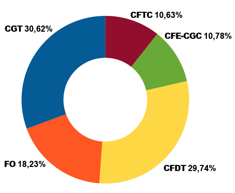 Autre inconnue de ce scrutin : le maintien de la CFTC comme syndicat « représentatif » pouvant mener des négociations paritaires au niveau national. Pari gagné pour cette centrale qui, avec une forte mobilisation, est parvenue à franchir largement la barre des 8 %. Il y a donc toujours cinq syndicats représentatifs au niveau national : la CGT, la CFDT, FO, la CFE-CGC et la CFTC. En éliminant les voix des autres organisations syndicales, le partage de la représentativité sera la suivante :