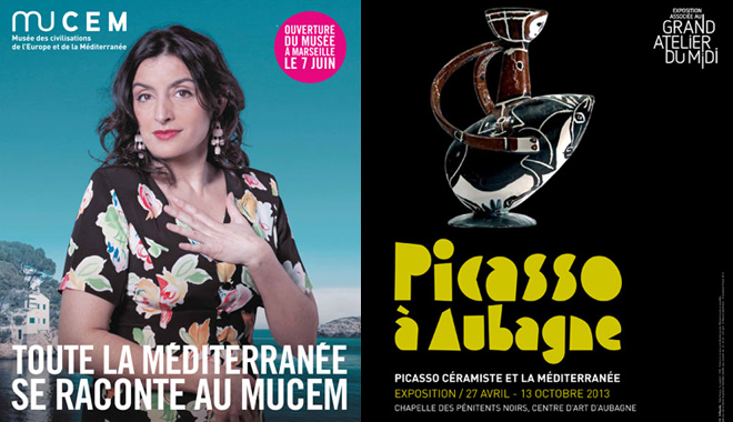 Le MuCEM ouvre avec cinq expositions, quatre temporaires et la Galerie de la Méditerranée. Dans le Fort Saint-Jean on verra deux expositions, une sur les arts du cirque et une photographique. La place d’armes est le lieu des spectacles en plein air. Ne pas oublier Aubagne qui présente une expo sur Picasso et la céramique.