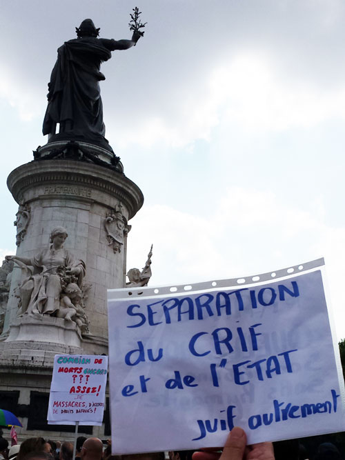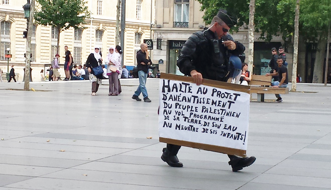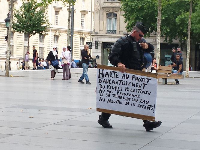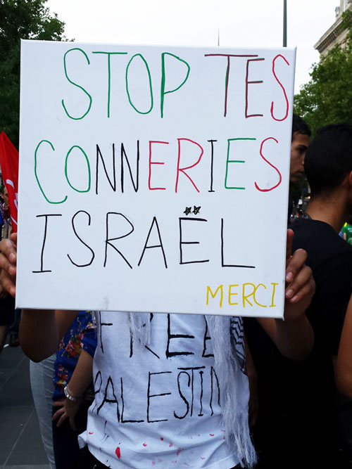 Malgré l’interdiction des pouvoirs publics, ils ont encore été des milliers à manifester en faveur de Gaza, place de la République à Paris ce samedi. Et à nouveau, ils avaient des messages à porter. Portfolio.