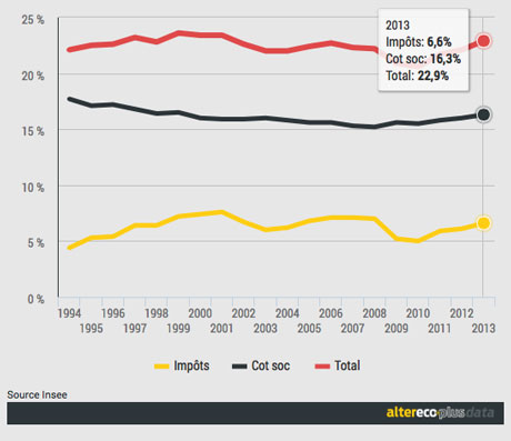 « Que les entreprises paient autant de cotisations sociales et d’impôt ne signifie pas qu’elles soient plus handicapées que les autres », explique le site d’Alternatives économiques qui, se basant sur plusieurs données, dément l’éternel diagnostic patronal. Une nouvelle fois mis en avant par le Medef avec son « état des lieux des prélèvements obligatoires pesant sur les entreprises » qui accompagne la mobilisation des chefs d’entreprises cette semaine, cet adage est contredit par le constat de salaires bruts relativement faibles en France et par une évolution de la fiscalité beaucoup moins haussière que prétendu…