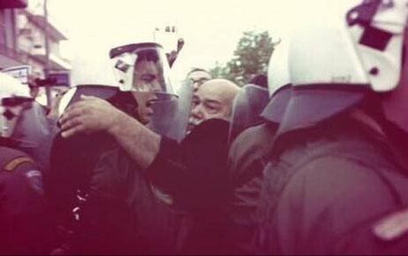 Avec la mention : « Le vieil homme au milieu est maintenant ministre de l’Intérieur et chef de la police grecque. »