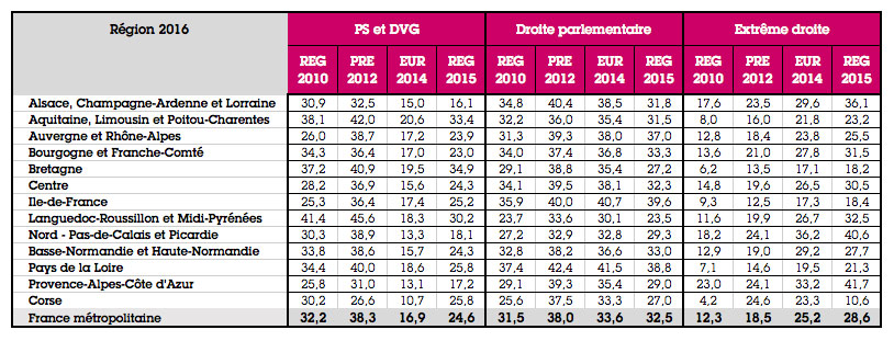 On peut se rassurer en se disant que cette faible attirance n’est que conjoncturelle, due à la tension du moment (l’état d’urgence) ou aux incertitudes sur la stratègie politique qui ont affecté l’intérieur même du Front de gauche et atténué sa lisibilité (pas moins de quatre configurations d’alliances dans 13 régions !). Mieux vaut ne pas se rassurer si vite. Quand le PCF a vu fondre son capital électoral, à partir de 1981, il a expliqué au départ que les abstentionnistes de gauche appartenaient encore à « son » électorat, et qu’il le retrouverait, par un discours oscillant entre durcissement du ton et les ouvertures unitaires. Or ceux qui avaient renoncé au vote communiste n’y sont plus revenus pour l’essentiel (voir l’évolution de l’abstention et des « familles » politiques, des régionales de 2010 à celles de 2015, et des européennes de 2014 aux régionales de 2015).