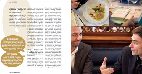 Jean Birnbaum et Raphaël Liogier ont chacun publié cet hiver un essai sur la place du religieux dans l’espace social. Ils se sont rencontrés à la descente du train, dans le magnifique restaurant de la Gare de Lyon, Le train bleu.